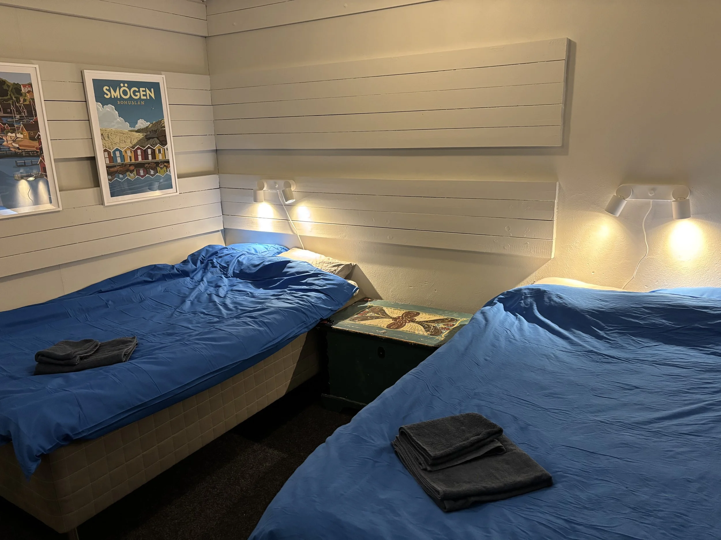 Ett litet mysigt rum i anslutning till stallet. I rummet finns två större enkelsängar 120x200. Som boende i rummet har du även tillgång toalett, dusch och kök.